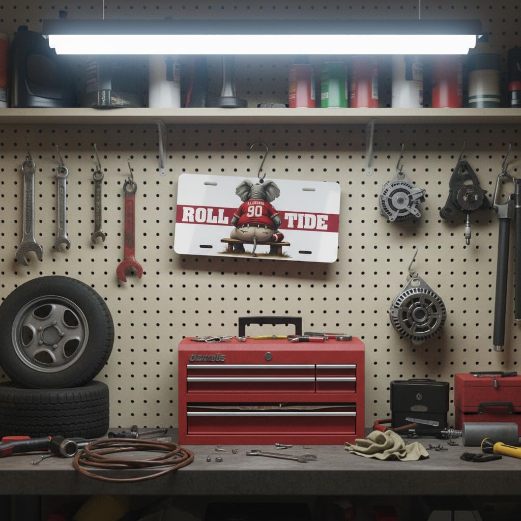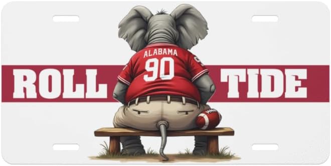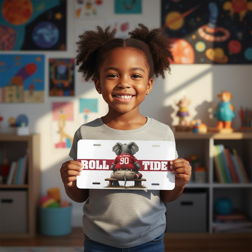 Premium Alabama Crimson Tide “Roll Tide” Elephant Mascot Car License Plate – Durable NCAA Fan Auto Tag